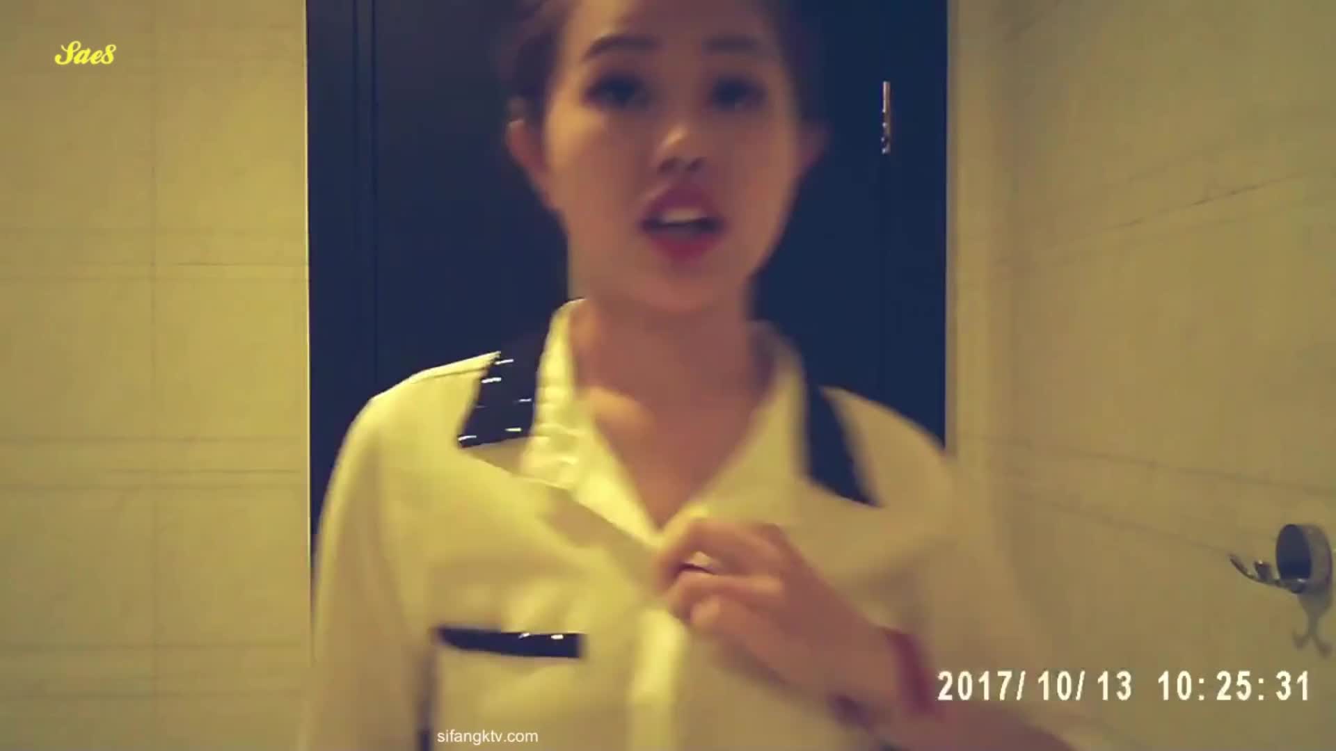 酒店浴室双面镜近距离偷拍美女换衣服